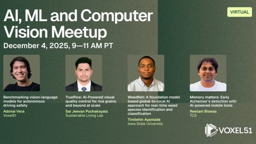 Join the virtual Meetup to hear talks from experts on cutting-edge topics across AI, ML, and computer vision.